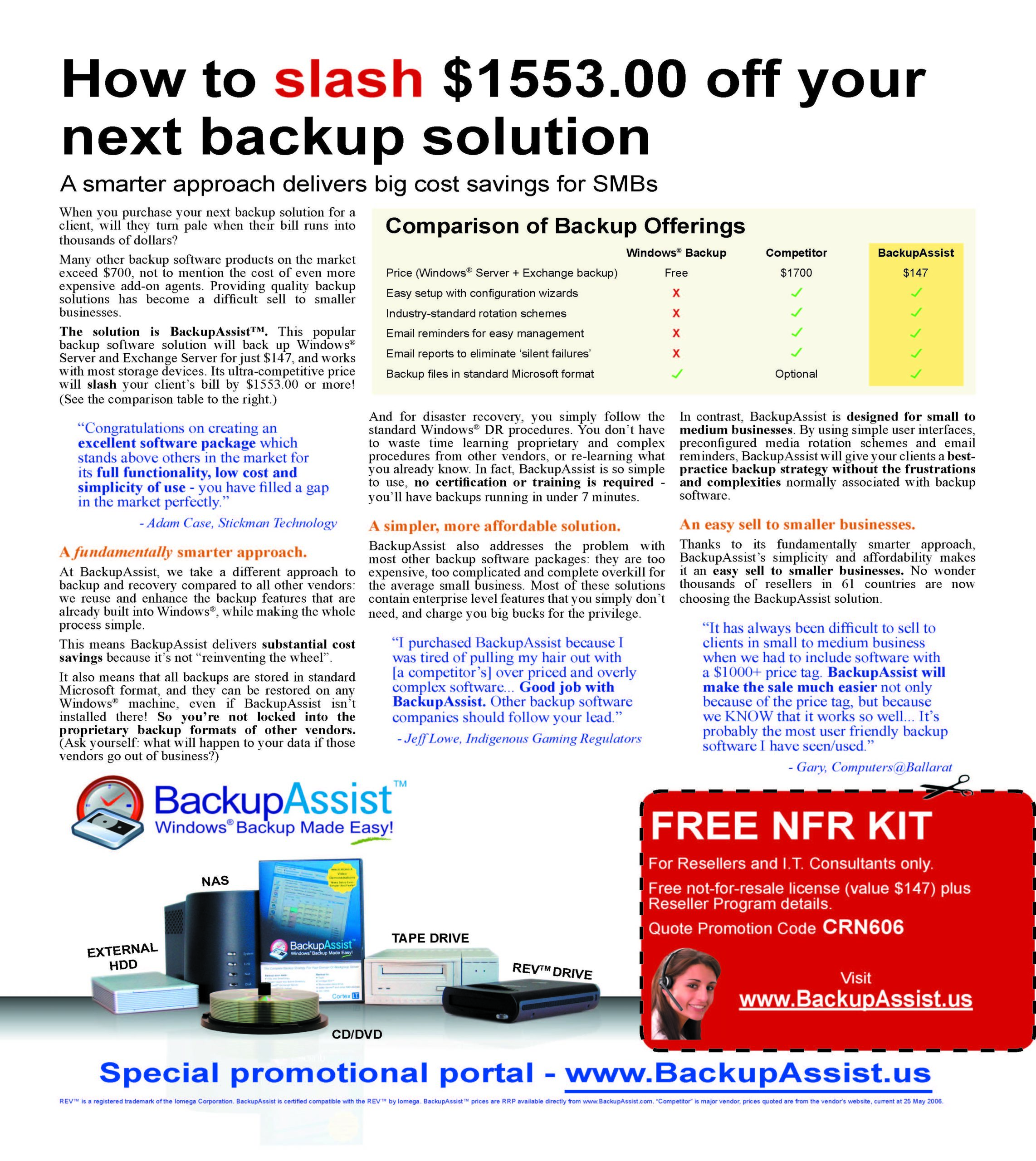So effectively, the junior version of Backup Exec plus the usability fixes in BackupAssist ended up outcompeting the senior version of Backup Exec for thousands and thousands of people.