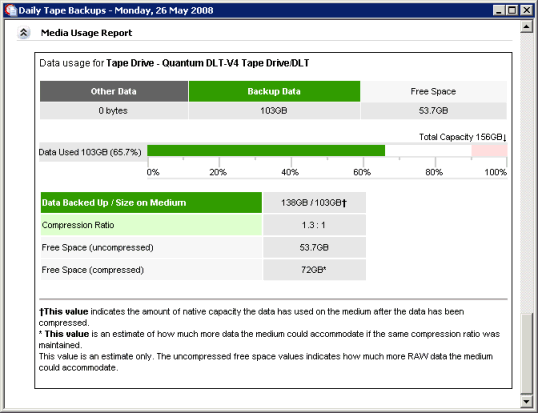 One major cause of backup failures is running out of space due to data growth. Our media usage report allows you to track data growth and see when your backup system needs upgrading.